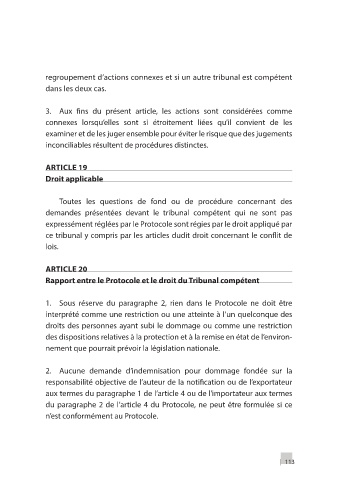 Rapport entre le Protocole et le droit du Tribunal compétent