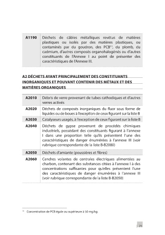 A2 DÉCHETS AYANT PRINCIPALEMENT DES CONSTITUANTS