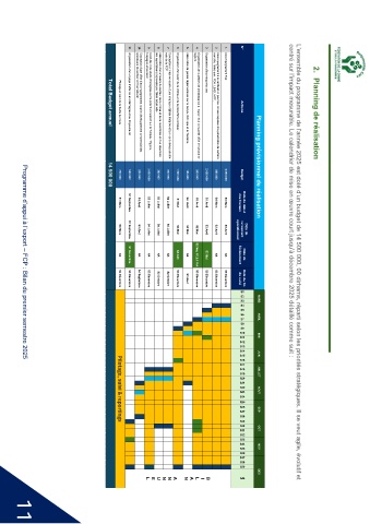 S1 Date de début Date de Planning prévisionnel de réalisation centré sur l’impact mesurable. Le calendrier de mise en œuvre court jusqu’à décembre 2025 détaillé comme suit : L’ensemble du programme de l’année 2025 est doté d’un budget de 14 500 000, 00 dirhams, réparti selon les priorités stratégiques. Il se veut agile, évolutif et 2.