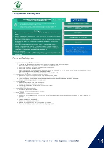 3.3. Organisation d’incomig visits Focus méthodologique Programme d’appui à l’export – FCP : Bilan du premier semestre 2025 14