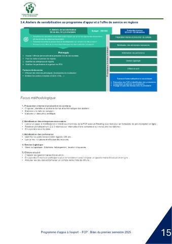 3.4. Ateliers de sensibilisation au programme d’appui et à l’offre de service en régions Focus méthodologique Programme d’appui à l’export – FCP : Bilan du premier semestre 2025 15