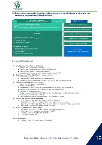 3.8. Elaboration d’un annuaire du secteur de la Chimie et de la parachimie et d’un répertoire des exportateurs marocains par filière industrielle Focus méthodologique Programme d’appui à l’export – FCP : Bilan du premier semestre 2025 19