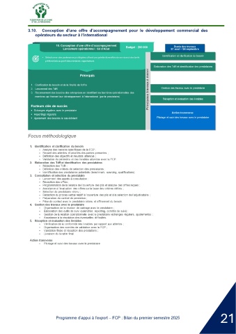 3.10. Conception d’une offre d’accompagnement pour le développement commercial des opérateurs du secteur à l’international Focus méthodologique Programme d’appui à l’export – FCP : Bilan du premier semestre 2025 21