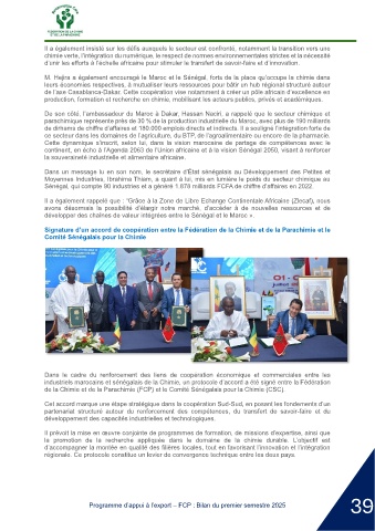 industriels marocains et sénégalais de la Chimie, un protocole d’accord a été signé entre la Fédération