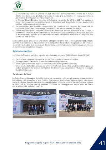 la FCP, tout en ouvrant des perspectives concrètes de développement export pour les filières