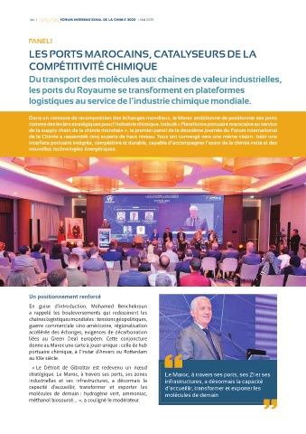 de la Chimie a rassemblé cinq experts de haut niveau. Tous ont convergé vers une même vision : bâtir une ports spécialisés : Jorf Lasfar, Mohammedia et Safi. les molécules vertes, réduire sa propre empreinte