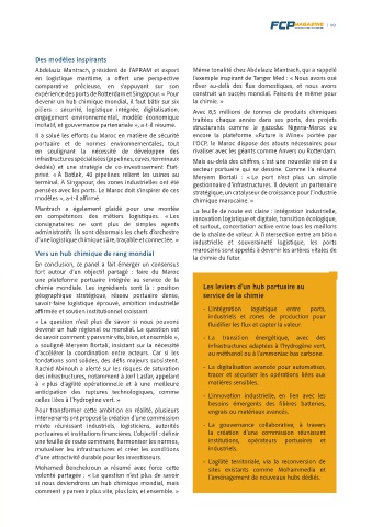 pour l’énergie décarbonée », a-t-il affirmé. besoins en mobilité durable, notamment pour les des infrastructures, notamment à Jorf Lasfar, appelant tracer et sécuriser les opérations liées aux