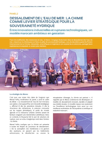mer, misant sur la chimie pour en faire un pilier de souveraineté hydrique. Lors du deuxième panel du Forum