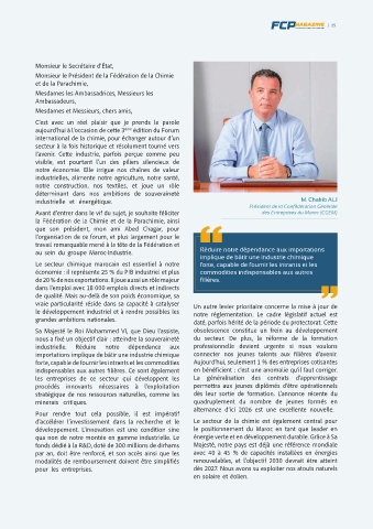 l’industrie chimique au centre de son modèle de M. Omar Hejira, la Fédération de la Chimie et de la Parachimie, ainsi