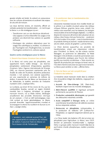 dollars. Il pourrait faire du Maroc un fournisseur clé d’un écosystème intégré des batteries, s’appuyant sur 3. Construire des alliances stratégiques, notamment