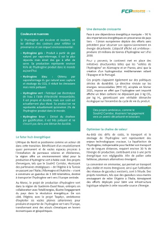 maîtrisée. produire et exporter de l’hydrogène vert vers l’Europe,