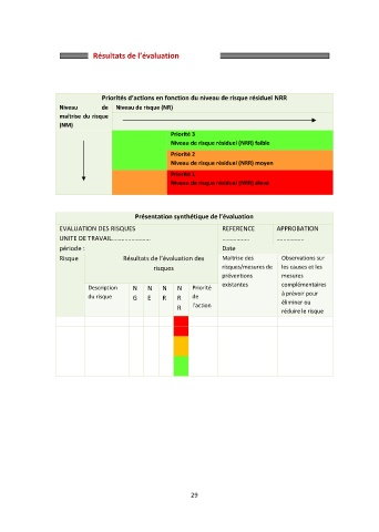 Priorités d’actions en fonction du niveau de risque résiduel NRR