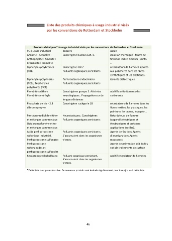 Produits chimiques* à usage industriel visés par les conventions de Rotterdam et Stockholm