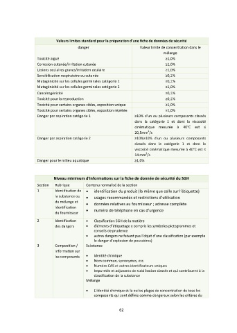 Niveau minimum d’informations sur la fiche de donnée de sécurité du SGH
