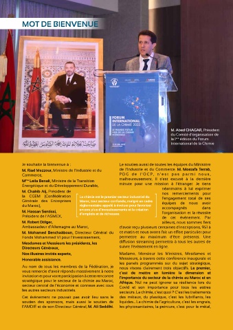 invitation et pour votre participation à cette rencontre l’importance du secteur de la chimie au Maroc et en