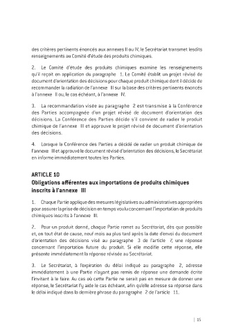 chimique de l’annexe III et approuve le projet révisé de document d’orientation