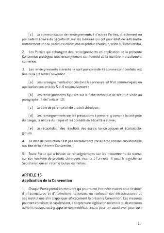 (c) La communication de renseignements à d’autres Parties, directement ou