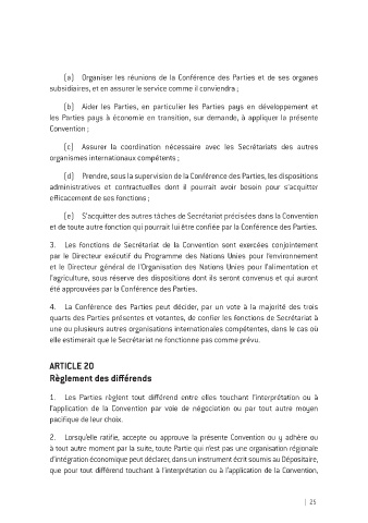 (e) S’acquitter des autres tâches de Secrétariat précisées dans la Convention