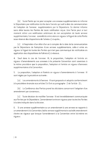 (b) Toute Partie qui ne peut accepter une annexe supplémentaire en informe